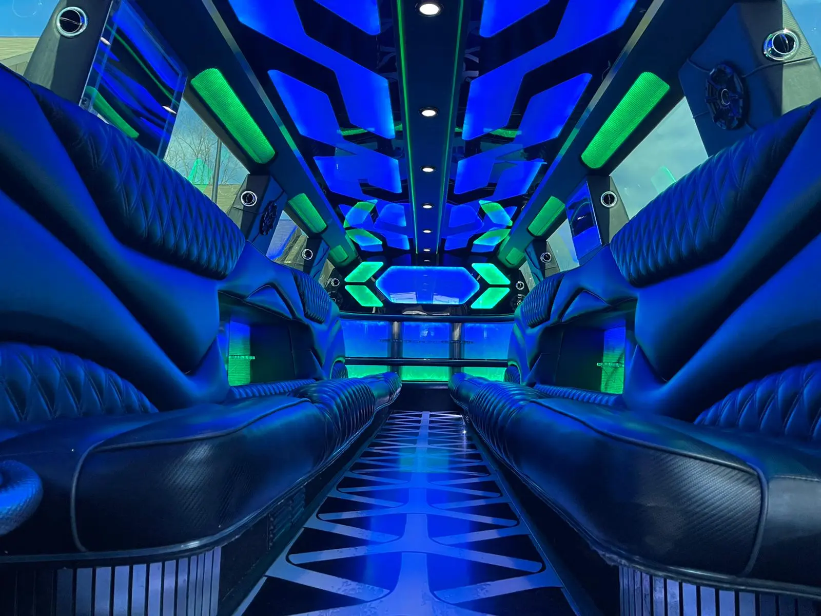 Plush Leather Seating with Mood Lighting for an upscale, comfortable ambiance